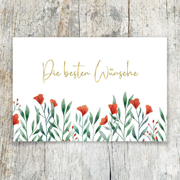 Glückwunschkarten mit Goldfolienprägung und roten Blüten – stilvoll „Die besten Wünsche“ übermitteln