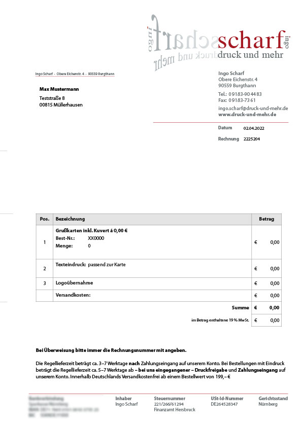 Ein Muster der Rechnung finden Sie hier: Musterrechnung*